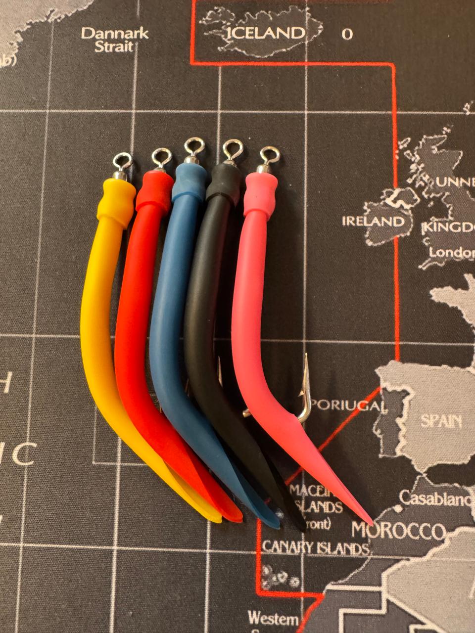 Hágæða ryðfríir 4/0 krókar hannaðir sérstaklega fyrir kröfuharða veiðimenn. Þessir krókar skara fram úr með einstöku festingarkerfi þar sem gúmmíið er tryggilega fest með ryðfríu stálhefti, sem veitir umtalsvert betri endingu en hefðbundnir krókar á markaðnum.
